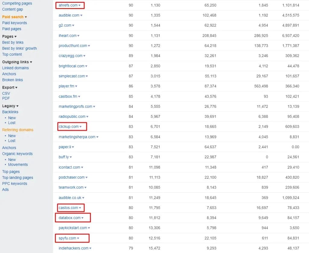 - Use Ahrefs batch analysis to find their Domain Rating & Organic traffic.